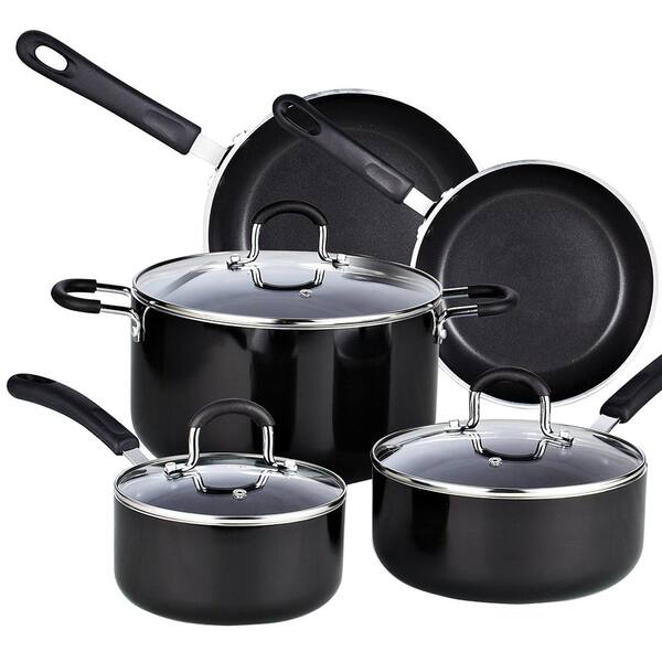Cook N Home 8 Piece Aluminum Nonstick Cookware Set In Black 02497 The Home Depot